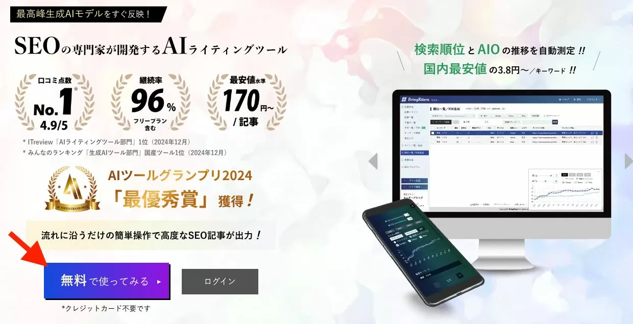 まずは無料プランで、その圧倒的な構成力と文章力を体験してみてください。あなたのサイト運営が、次のステージへと進化することを約束します。