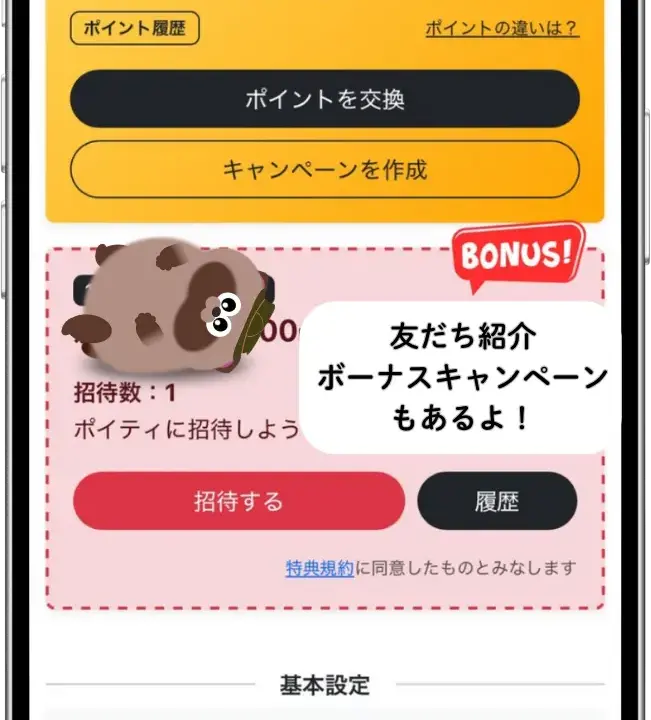 私が登録した時点(2025年11月)では、新規登録時に招待コードを入力するだけで1,000ポイント(100円分)がもらえるキャンペーンを実施していました。これから始める方は、公式サイトやSNSでお得なコードを探してみるのがおすすめです。