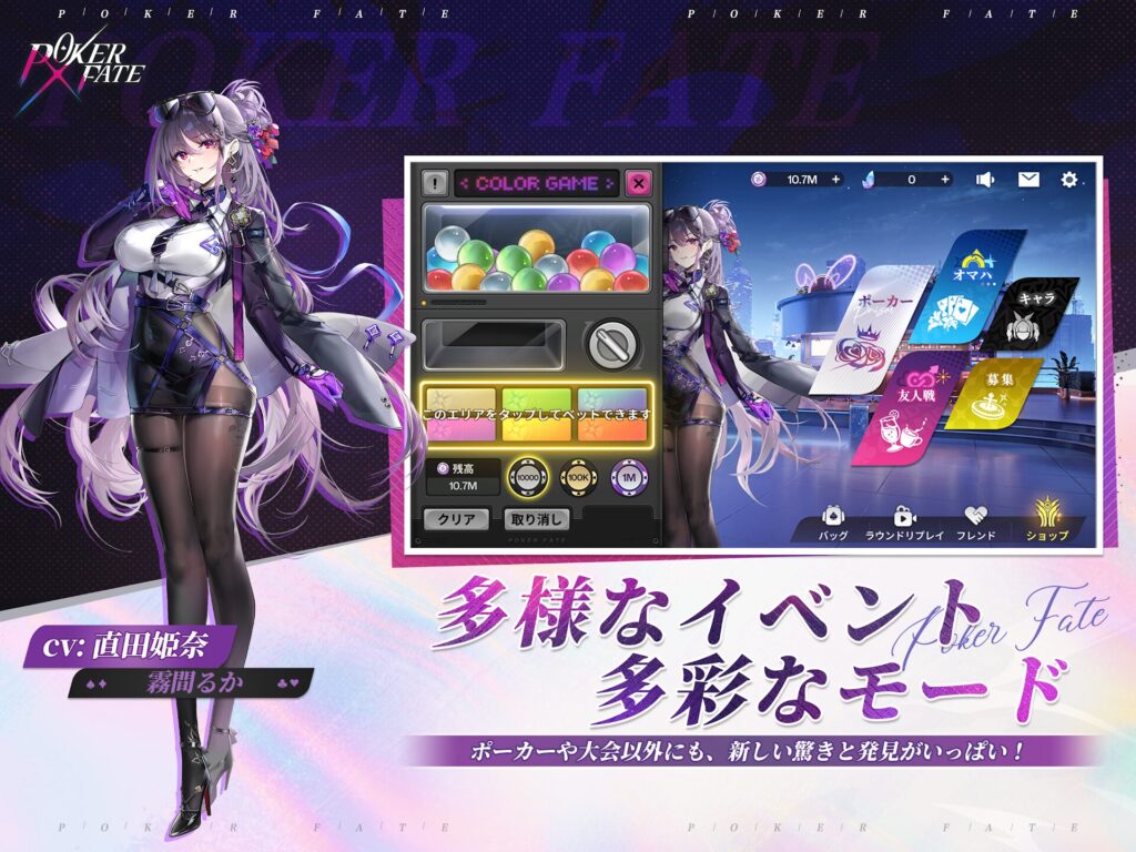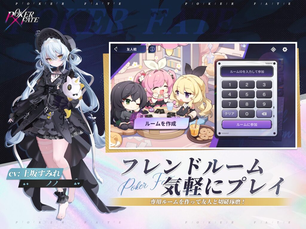 『Poker Fate』は、世界標準のポーカールール「テキサスホールデム」を採用した、美少女オンライン対戦ゲームです。